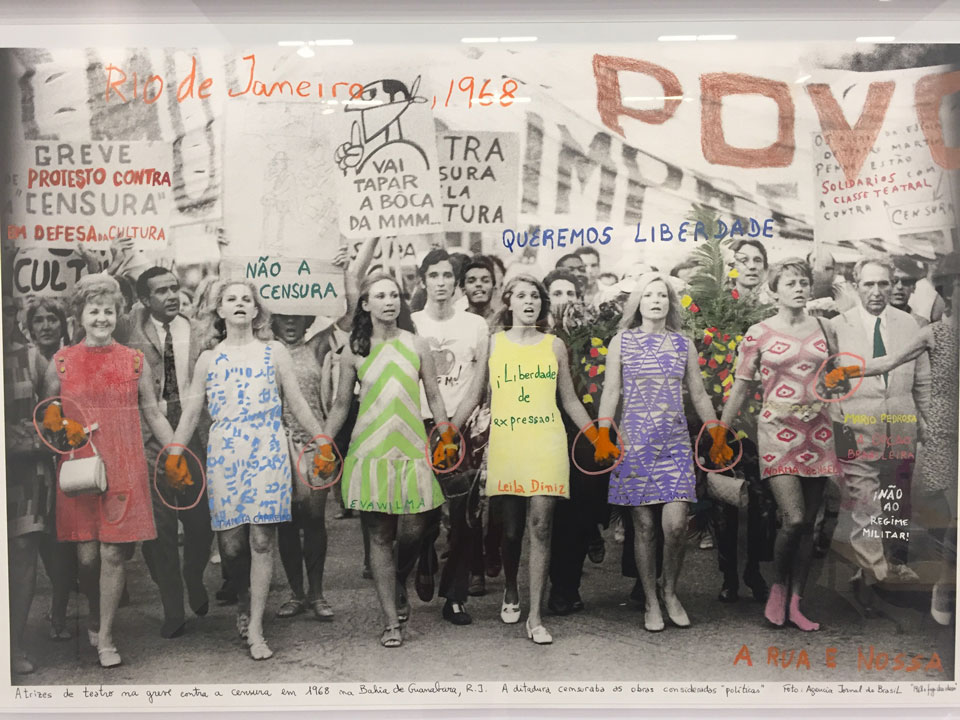 One work that caught my attention was a piece by Marcelo Brodsky, exhibited by Rolf Art Gallery from Argentina, who presents altered photographs captured during protests undertaken around the world. Cities like London, Rio de Janeiro, Montevideo, Washington, Bogota, Paris, Mexico City, São Paulo, Kingston, Prague and Milan, become the stars in the work ‘The Fire of Ideas’. In Brodsky’s hands, each one is giving a clearer identity, as he uses color and texts to highlight the collective feeling in the historical moment that they represent.