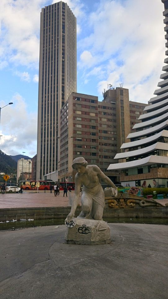 The Rebeca arrived from the town of Pietrasanta, Italy, to Bogotá in 1926, making her the first nude female sculpture to be displayed in a public space in the capital. Only in 2012 was the identity of her real sculptor, Tito Ricci, discovered and in the year prior she was moved from the Parque Centenario (of which today’s Parque de la Independencia is just a small remaining part) to be placed in her current, isolated home. Here she is abandoned and occasionally mutilated, painted and, very often, caressed by the streets’ dwellers.