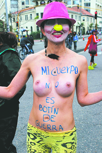 Sometime around 3 o’clock, seemingly at the sole decision of a group of half-dressed marchers, the parade was off. Chanting and drumming with breasts and other bodily equipment flopping about like fish washed ashore, the half-naked processional hadn’t gotten through the first block when a miraculous thing happened – like a gift from above, the clouds parted, the rain stopped and the sun made itself known. From then on, the weather was perfect. There was no reason not to celebrate.