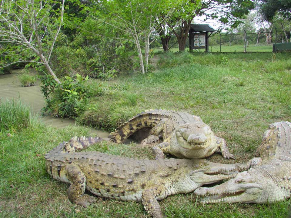 When the keepers start hoying the chunks of bloody carcass over the top, a frenzy breaks out. It’s a spectacle, alright, as the giants smash into one another and chase each other about the place, even into the water. After the dust has settled and the bones are being left, we head for an altogether more genteel and sedate affair – a trip through the grounds of the reserve. Here, various caiman and other species are left to their own devices.